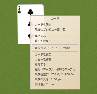 - カード上でダブルクリックすると表裏を切り替えできます。