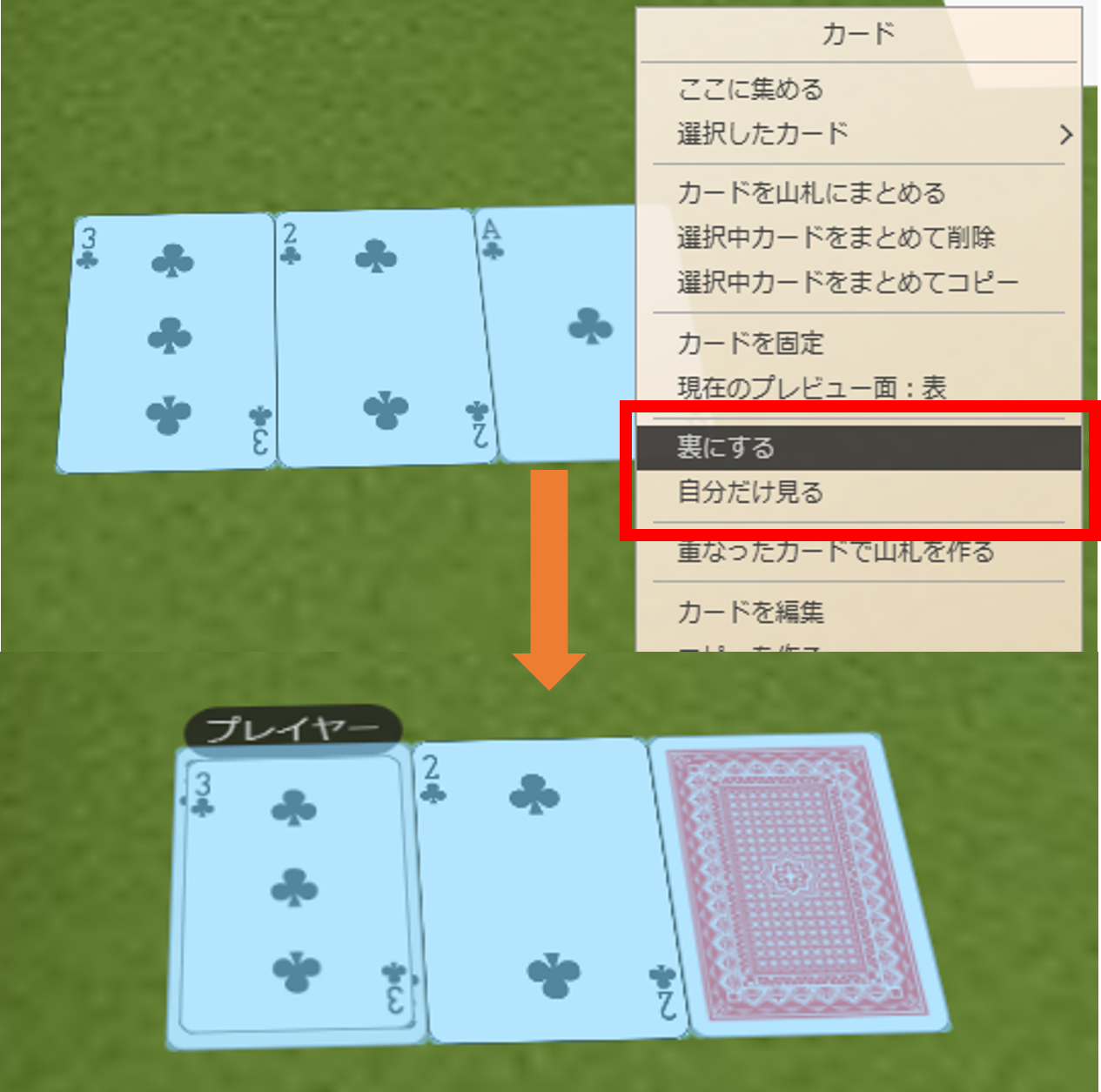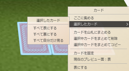 - ”選択したカード”メニューからすべて表にする・裏にする・自分だけ見る